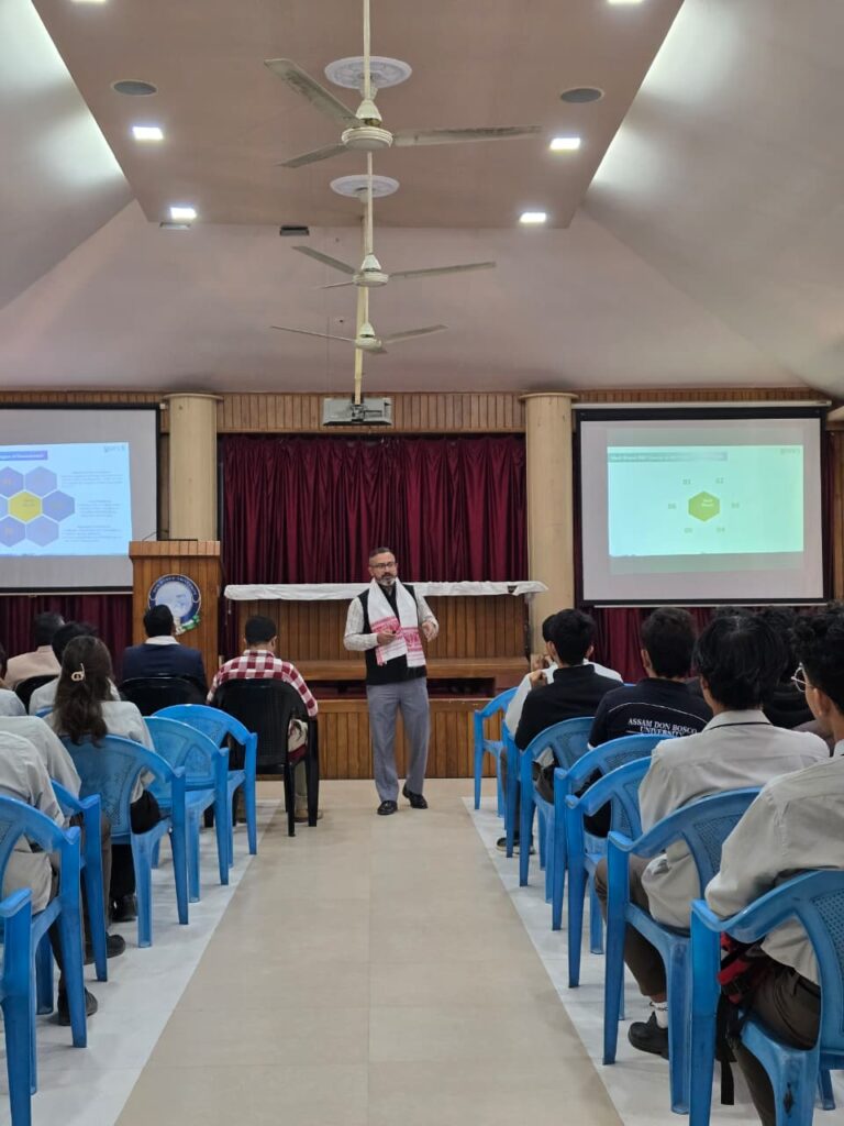 The School of Technology, Assam Don Bosco University, Azara, organized an expert talk titled “Powering India’s Growth: Energy, Engineering & Sustainability” delivered by Dr. Atul Rawat of UPES, engaging 109 students and faculty from Civil, Mechanical, and Electrical & Electronics Engineering. The session highlighted India’s evolving energy landscape, the push toward cleaner technologies, and emerging innovations such as smart grids, AI-driven forecasting, and the Green Hydrogen Mission, while emphasizing the critical role of engineers in sustainable national development. The talk inspired students to explore energy engineering as a promising career pathway aligned with India’s future needs.