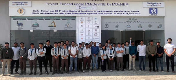 A group of 36 students from the Department of Mechanical Engineering successfully completed a four-day Industrial Visit and Short-Term Course on “Digital Design and 3D Printing” at the AMTRON 3D Printing Centre of Excellence in Guwahati, from 16/02/2026 to 19/02/2026. The program was meticulously designed to provide the students with a comprehensive understanding of additive manufacturing technologies, bridging the gap between theoretical knowledge and industrial application. The department faculty played a crucial role in facilitating this learning experience by accompanying the students each day.