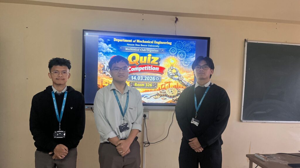 A quiz competition was conducted in association with Mechanical club on 14/03/2026. Students and faculty members from Mechanical Dept actively participated in the event. Mr. Arnab Hazarika from MNE4 secured the 1st position, Mr. Levi Cheran Momin from MNE4 won the 2nd prize and Mr. Rajkumar Satyasana from MNE6 won the 3rd prize. The department congratulates them. Mechanical club will continue to hold such events in future.