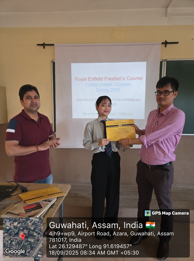Spring 2025. Dr. Buljit Buragohain, HoD and Assistant Professor, Mechanical Engineering Department, was the chief guest and distributed the