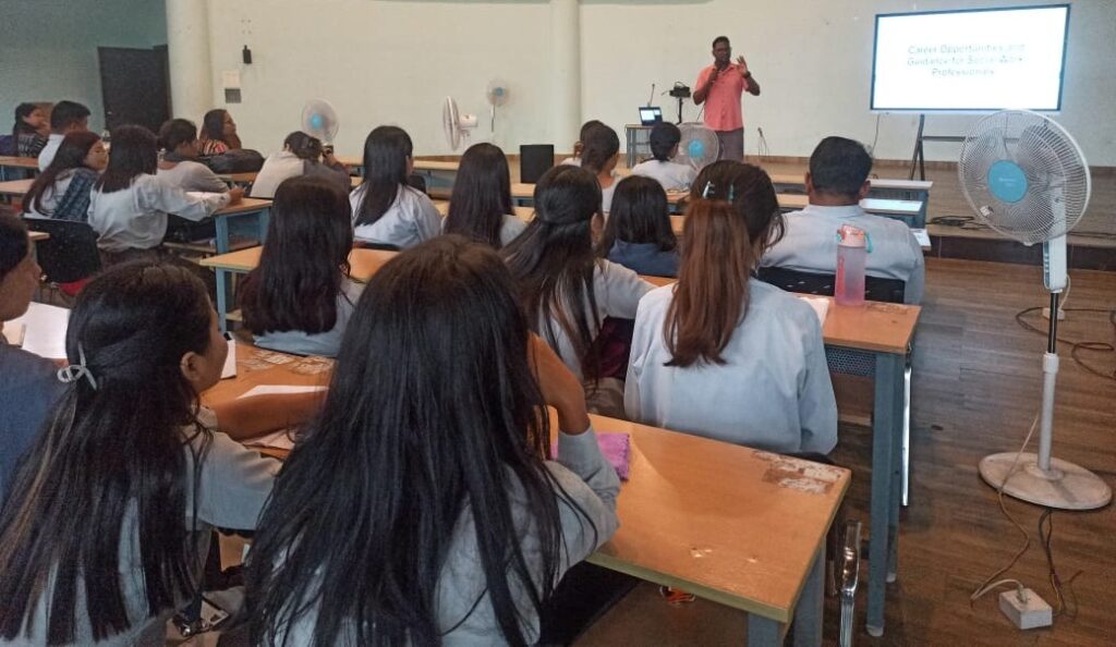 The Department of Social Work, Assam Don Bosco University, organized a Career Counselling Lecture Session on “Professional Opportunities and Challenges for MSW Freshers” on 30th May 2025. The session was facilitated by Mr. Eddy Edward Kujur, State Programme Manager at NEIDA and a PhD Scholar of the Department, with the objective of providing insights into diverse career pathways in social work, including NGOs, government sectors, CSR, mental health services, and research. The discussion also addressed key challenges faced by freshers, such as limited employment opportunities, financial constraints, and workplace stress, while emphasizing resilience, continuous skill development, and professional networking. The session enhanced students’ understanding of industry expectations and strengthened their preparedness for the job market, with the participation of 59 MSW 4th Semester students.
