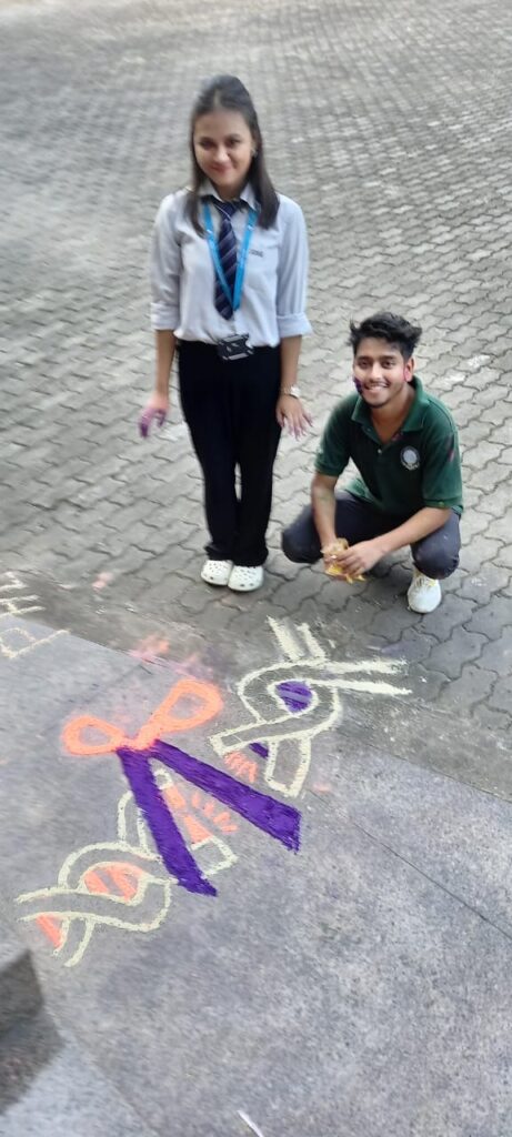 Participants showcased their creativity by designing rangolis depicting microbial forms and portraits of eminent microbiologists such as Robert Koch and Louis Pasteur. Through their artistic expressions, students highlighted key contributions of these pioneers—Koch’s identification of causative agents of major infectious diseases and Pasteur’s foundational work in vaccination, fermentation, and pasteurisation.