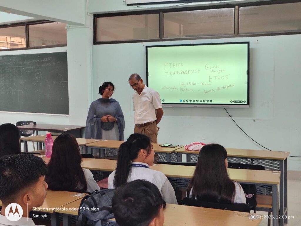Following the inauguration, Professor Dutta delivered an insightful presentation supported by PowerPoint slides, highlighting the significance of ethical conduct and the need for transparency in professional and academic practices. A total of 53 participants, including faculty members and undergraduate and postgraduate students, actively participated in the workshop. The sessions were highly interactive, with students asking questions and sharing their views on the topic. The program concluded with a vote of thanks delivered by Dr. Sujit Talukdar, Assistant Professor of the Department. The workshop successfully sensitized participants to the values of ethical behaviour, integrity, and transparency, fostering a culture of responsibility and accountability within the academic community.