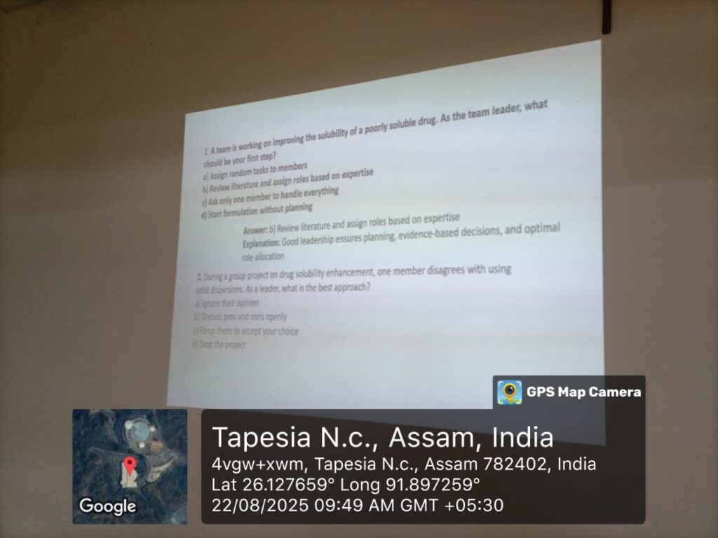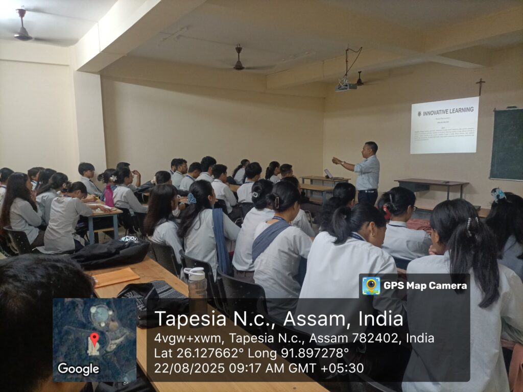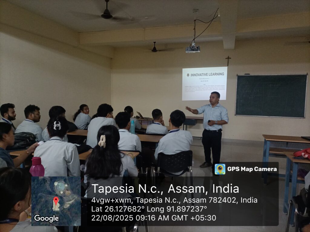 The Institute of Pharmacy, Assam Don Bosco University, organized an Innovative Teaching and Learning Programme for B. Pharm 3rd Semester students under the guidance of faculty in-charge Dr. Arindam Chatterjee and Mr. Peter De Roux Sumer on 22nd August 2025. The initiative was specially designed to strengthen important Programme Outcomes (POs) such as leadership, communication, ethics, teamwork, and problem-solving, while covering the subject’s core concepts of drug solubility, solubility expressions, diffusion principles, and distribution law.