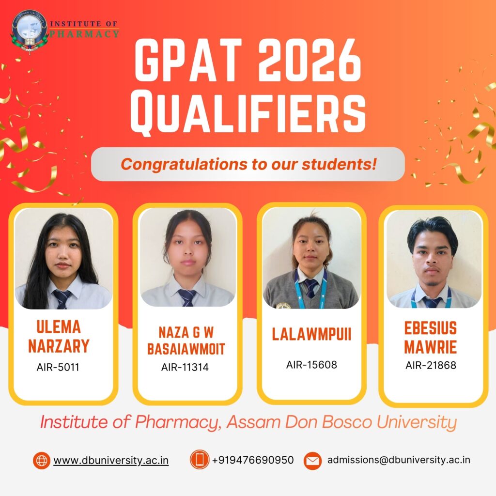 Institute of Pharmacy, Assam Don Bosco University congratulates GPAT 2026 Qualifiers!