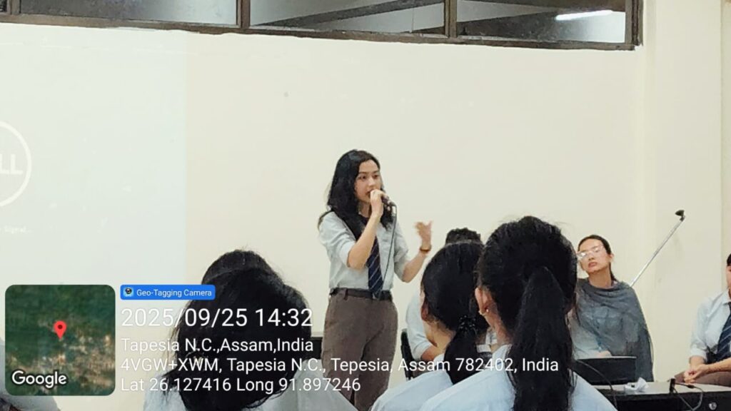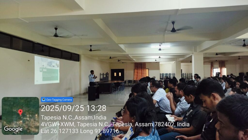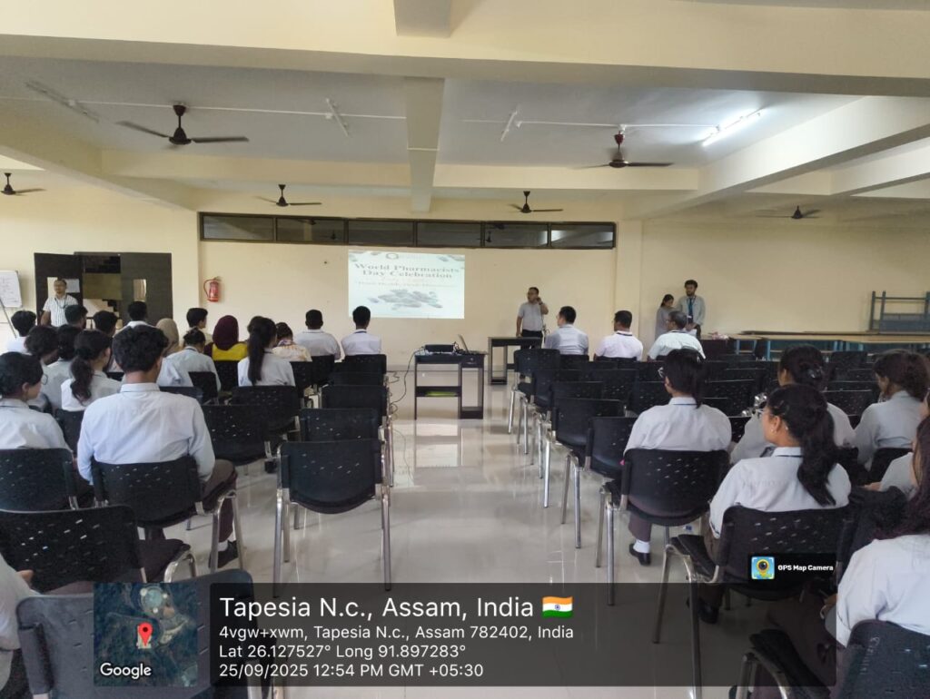 Adding a student perspective to the event, Ms. D’Arcy N Marak (B. Pharm 1st Semester) and Ms. Sradhya Das (B. Pharm 3rd Semester) delivered thoughtful speeches on the relevance of the day’s theme. An academic highlight of the programme was a 50-minute talk by Dr. Deepjyoti Saikia, Assistant Professor, who shared valuable insights into current trends and innovations in pharmacy practice.