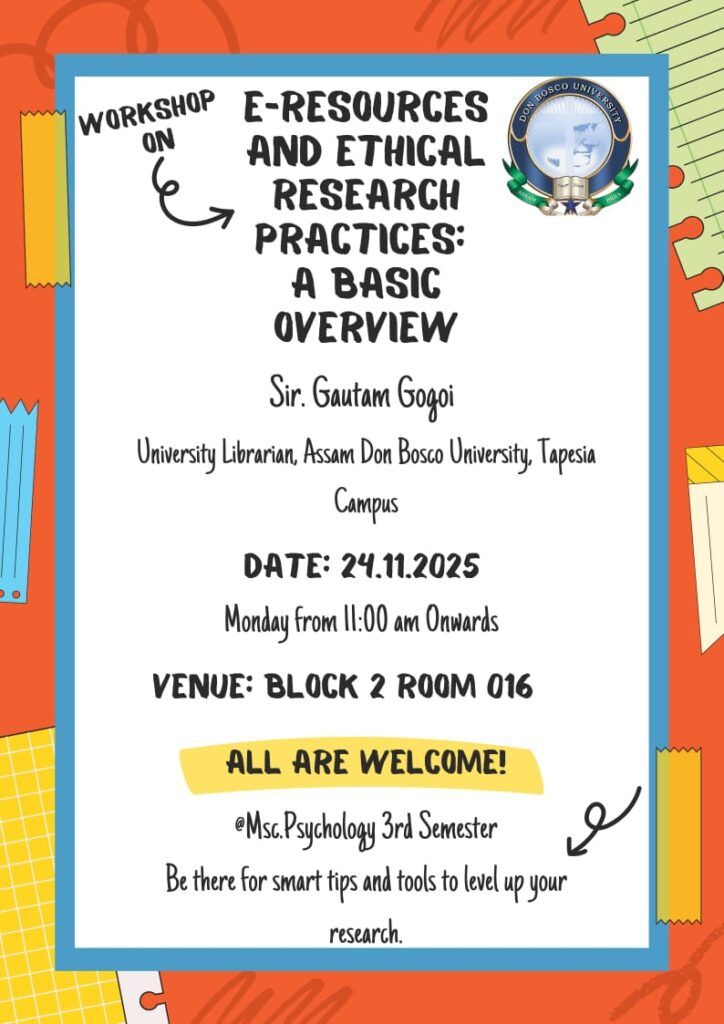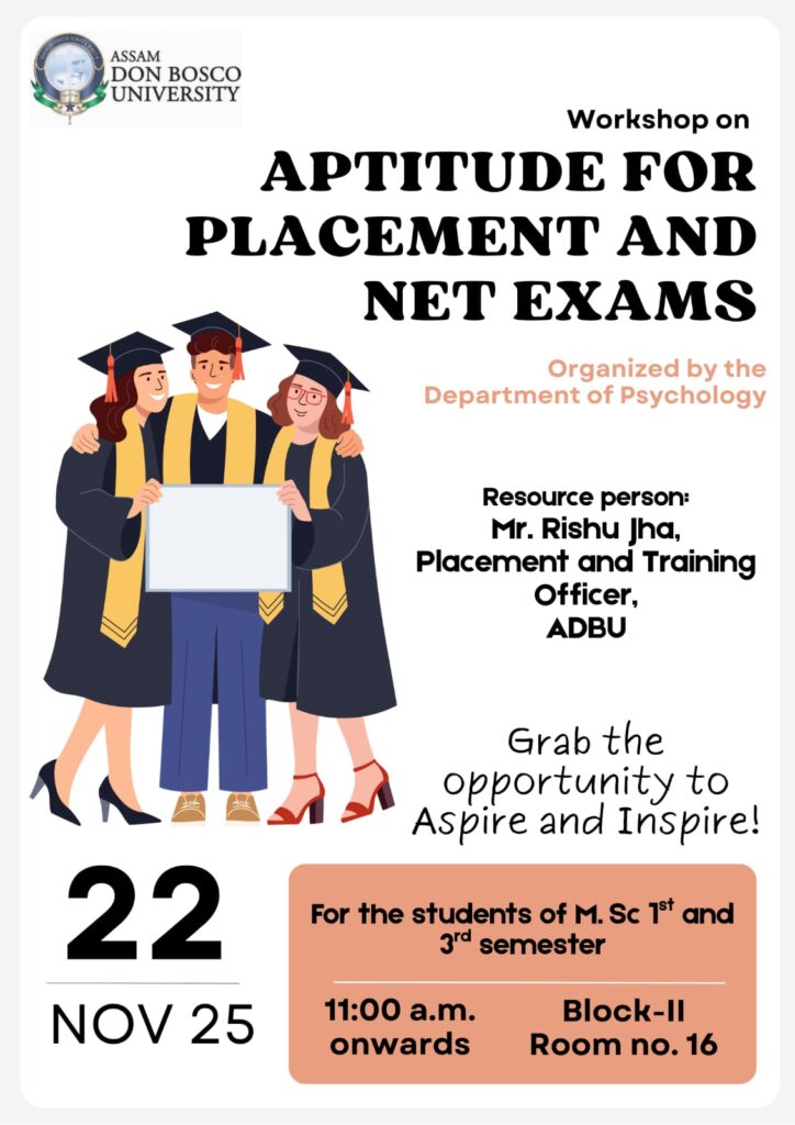 Date: 7th April 2026Organized by: Department of Psychology, Assam Don Bosco UniversityUnder Club: SAMSKARA – Mental Imprints Shaping BehaviourIn Collaboration With: Projonmo (NGO)Venue: Block II Atrium, Assam Don Bosco University (ADBU)Coordinator: Ms. Tanushree Choudhury The Department of Psychology, Assam Don Bosco University, under its mental health club SAMSKARA – Mental Imprints Shaping Behaviour, organized an awareness programme on the occasion of […]