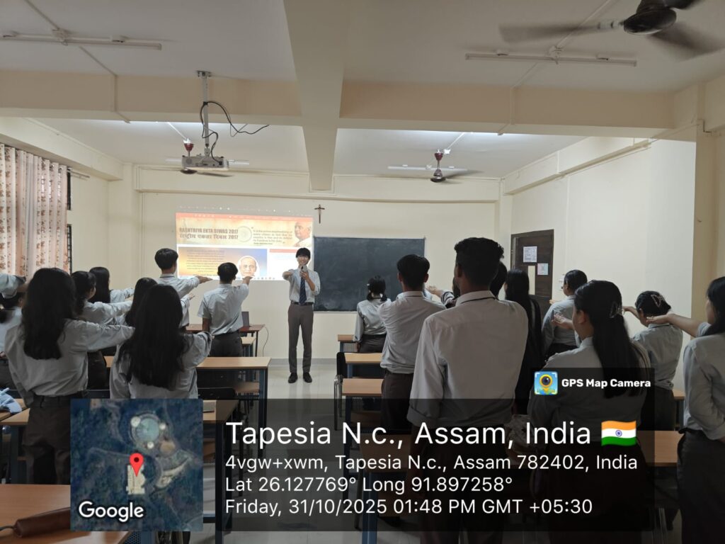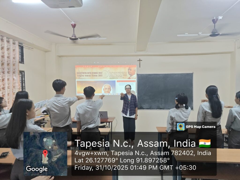 The event was coordinated by Dr. Pankaj Kumar Kalita, Mr. Rupak Biswas, Ms. Manashi Parashar, and Dr. Khaidem Yaiphabi Singha, ensuring active participation from students across different semesters. The programme concluded with an interactive session, where students shared reflections on unity and nation-building.