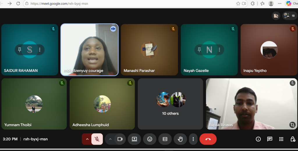 The workshop was convened by Dr. Saurabh Chandra and coordinated by Mr. Rupak Biswas. It featured distinguished resource persons, including Dr. Nayah Gazelle Abang and Dr. Mbiydzenyuy Courage Sevidzem from Cameroon, and Dr. Nabanita Kakati from Rajiv Gandhi University.