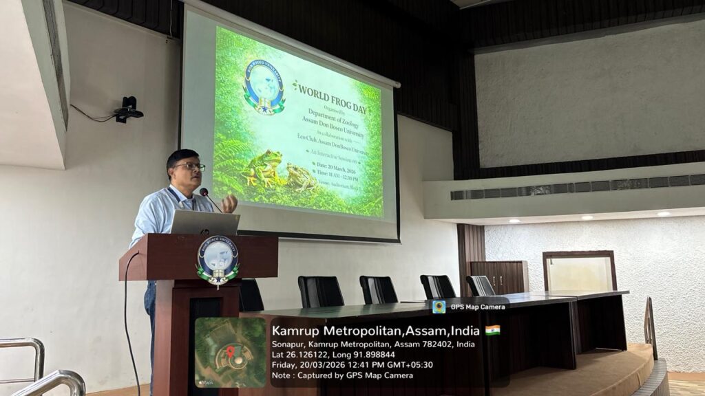 The Department of Zoology, Assam Don Bosco University, Tapesia, in collaboration with the Eco Club, organized a program to celebrate World Frog Day on 20th March 2026. The event was conducted with the objective of creating awareness about amphibians and encouraging interest in anuran research among students. The main segment of the program consisted of presentations delivered by PhD scholars on various aspects of Anuran research. A total of five presentations were conducted and each presentation contributed to a better understanding of amphibians from both field and laboratory perspectives. The program not only enhanced awareness about amphibians but also encouraged students to explore research opportunities in this field.