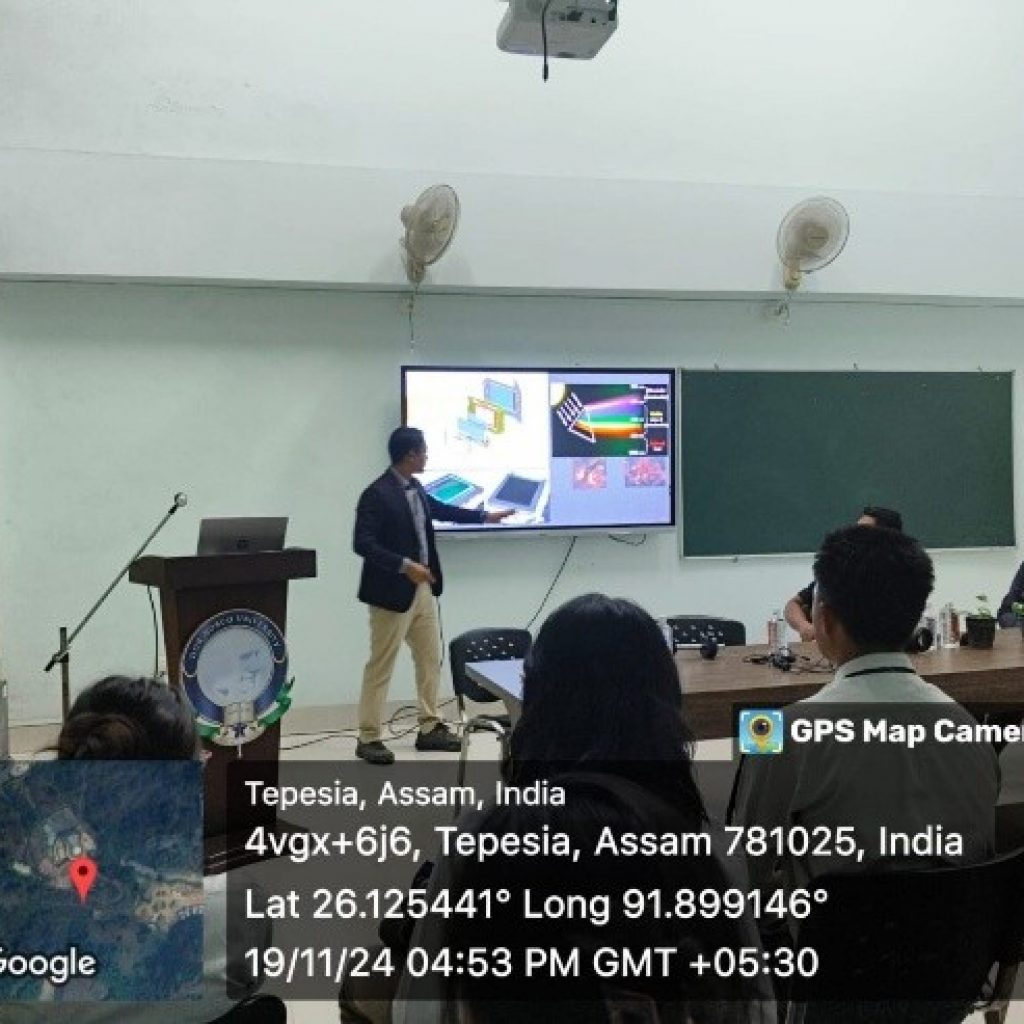 A one-day Astrophotography Workshop was conducted on 19 November 2024 by the Astronomy Club, Department of Physics, Assam Don Bosco University, aimed at introducing participants to the fundamentals of astrophotography, including essential techniques, equipment, and skills for capturing celestial objects such as stars, planets, constellations, and deep-sky objects. Conducted by Mr. Neeraj K. Phookan, Assistant Professor, Assam Don Bosco University, and Dr. Arunava Borah, Assistant Professor, Jorhat Medical College and Hospital, the workshop combined theoretical discussions with hands-on sessions covering camera settings, composition, sky conditions, celestial planning, basic image processing, and a night-time practical where participants photographed stars, star trails, constellations, and planets, including Jupiter and its moons.
